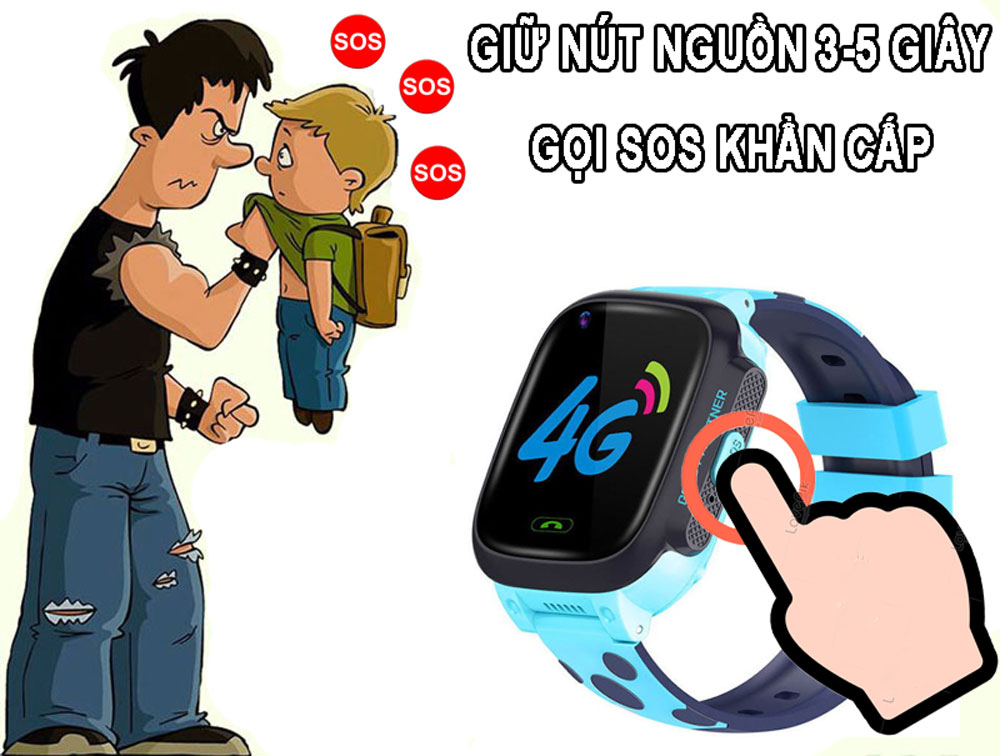 Chức năng gọi khẩn cấp đến 3 số người thân cần thiết trong mọi trường hợp, ba mẹ hướng dẫn bé ấn giữ nút nguồn 3-5 giây. Ngay lập tức đồng hồ sẽ kết nối đến 1 trong 3 số người thân mà ba mẹ đã thiết lập sẵn trên phần mềm để gọi đến người thân nhanh chóng mà không cần phải truy cập danh bạ. Đây là chức năng thiết thực và cần thiết khi bé gặp nguy hiểm hoặc trong tình huống cấp bách.
